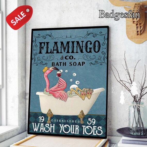 Flamingo Co Bath Soap Wash Your Toes Poster Funny Flamingo Etsy